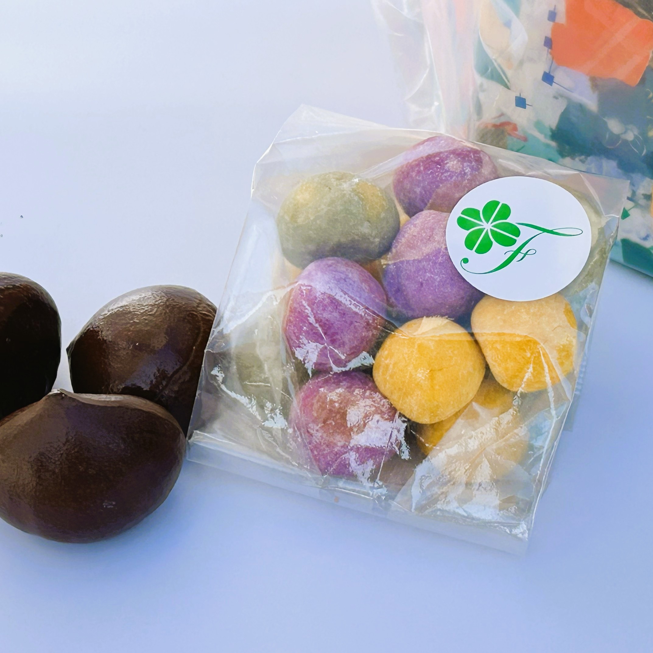 ■ボーロ3種:100g当たり ●エネルギー 419kcal ●たんぱく質 6.5g ●脂質 13.6g ●炭水化物 67.6g ●食塩相当量 0.08g
