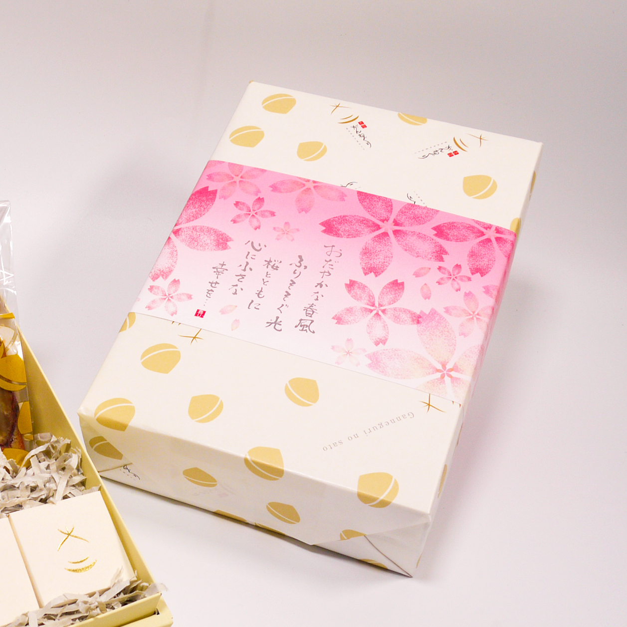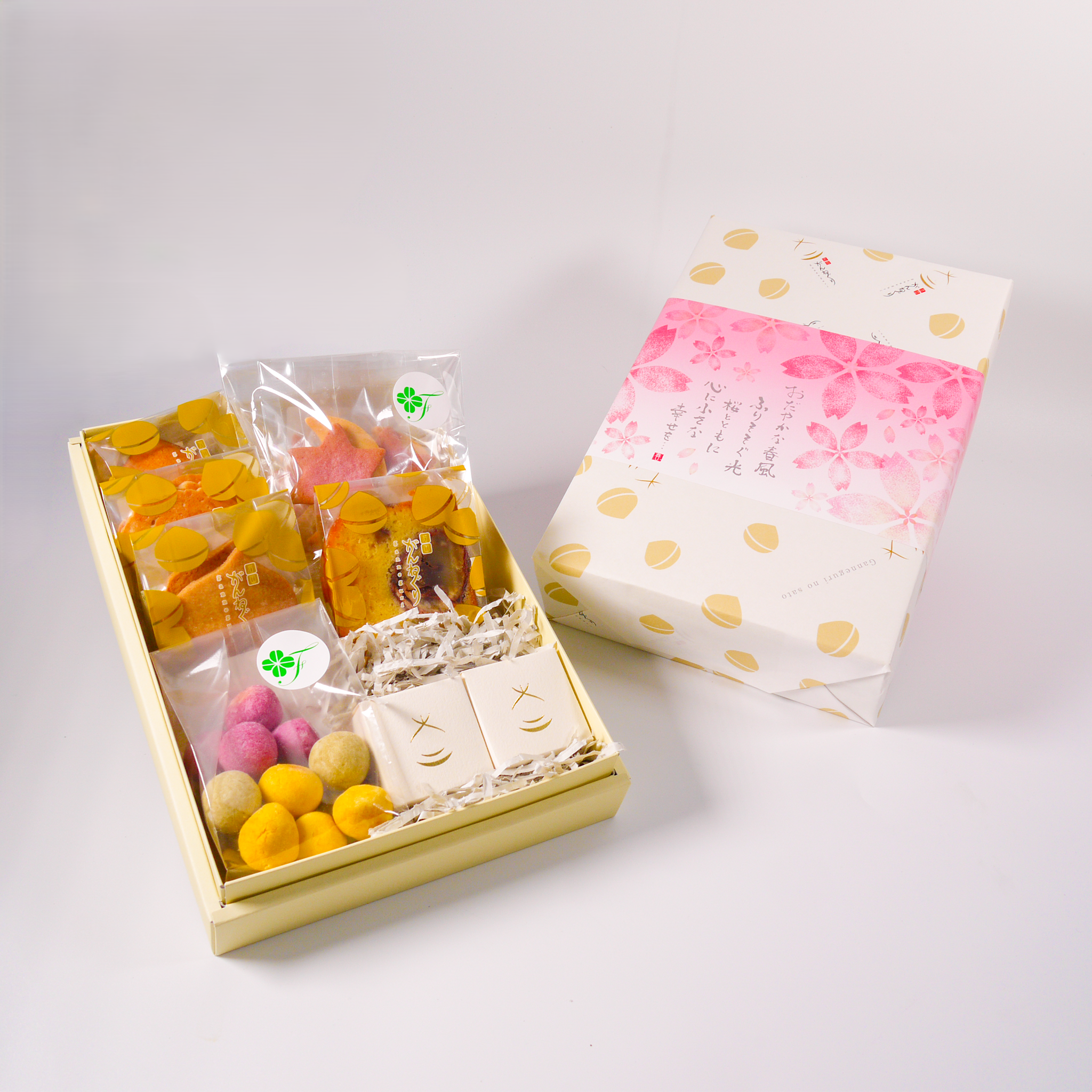 定番商品「がんね栗衛門」のほか、新商品「美和りぞちーの」シリーズなど、人気の菓子を詰め合わせました。お世話になった方への贈り物や、卒業・入学のお祝いにぴったりの春限定ギフトです。